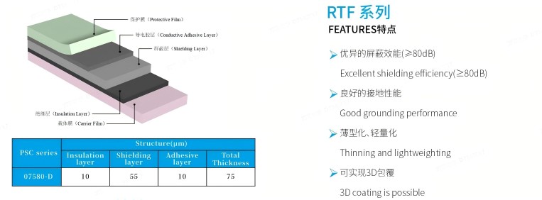 PSC series electromagnetic shielding cover were produced from Guangzhou Fangbang Electronics Co., Ltd,which can keep signal transmission of high frequency integrity and effectively shield the EM wave. PSC series were provided with excellent flexibility, lower insertion loss,superior SE, Stable grounding resistance and so on.The films were dedicated for PCB products.