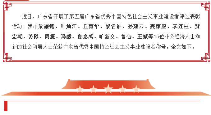 第五屆廣東省非公有制經(jīng)濟(jì)人士?jī)?yōu)秀中國(guó)特色社會(huì)主義事業(yè)建設(shè)者名單